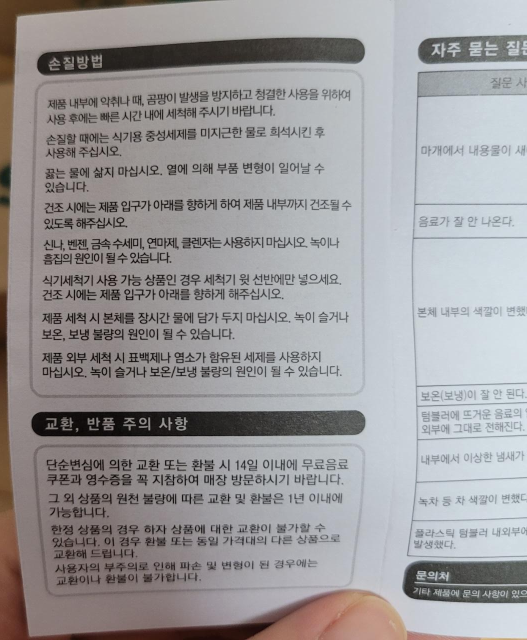 스타벅스 텀블러는 바닥을 보면 기본정보가 쓰여있어요