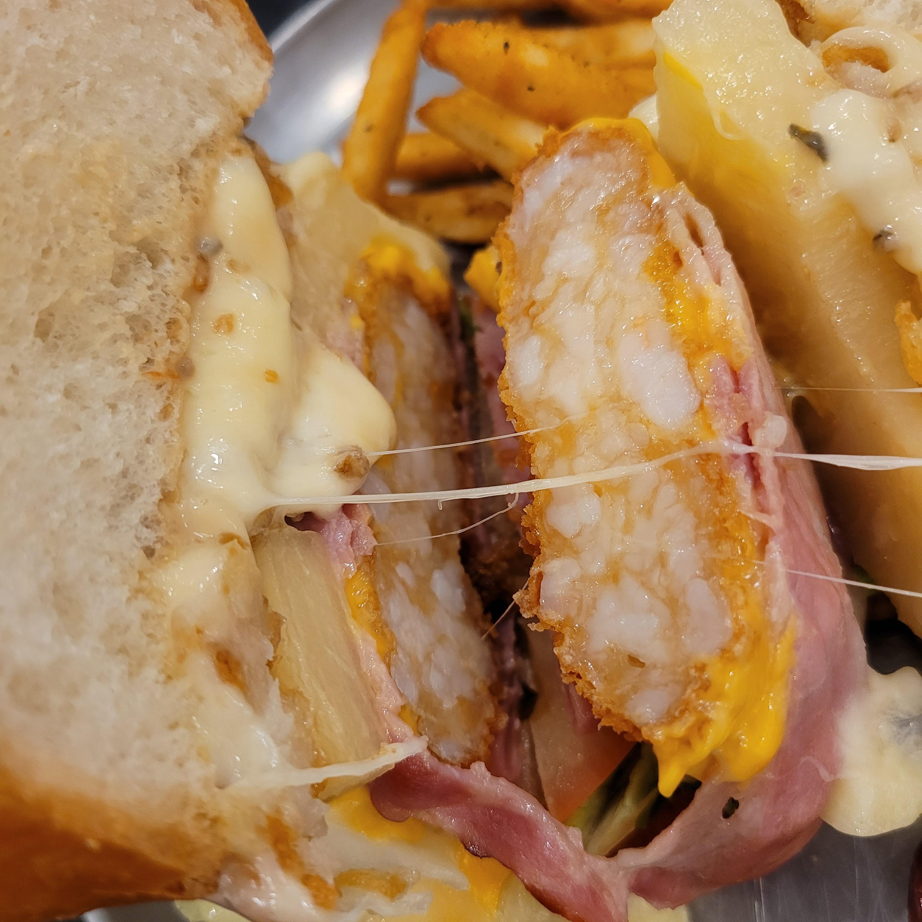 남양주 버거에 해쉬브라운과 모짜렐라 치즈가 추가된게 임실버거 입니다!